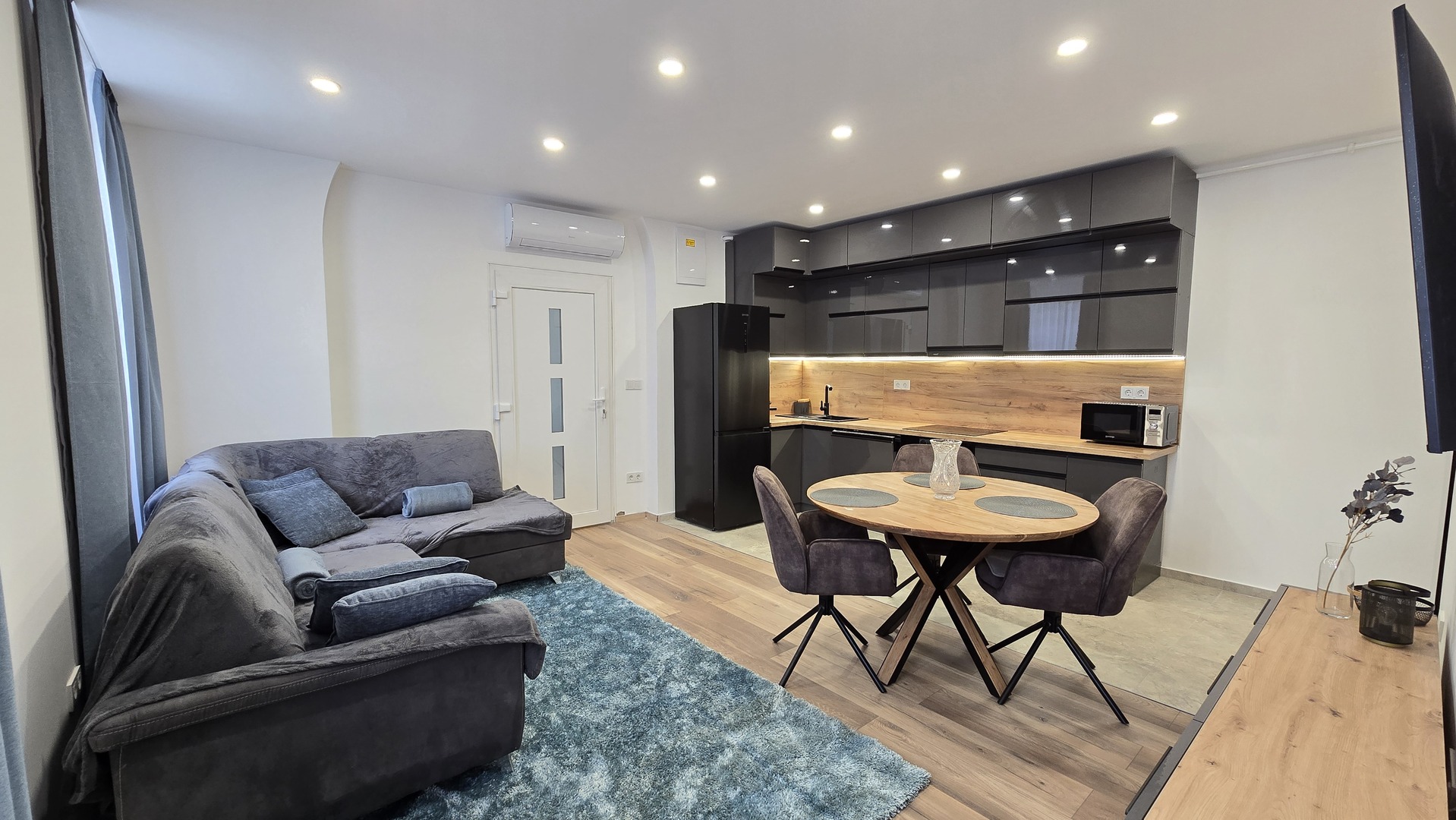 A 47 m2-es ingatlan egy teljeskörű felújítás után, a képeken látható állapotban, bútorozva és gépesítve azonnal költözhető állapotban várja első lakóját.